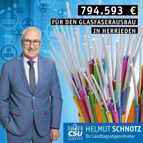 Der Glasfaserausbau in der Region erhält einen weiteren kräftigen Schub. Der Stadt Herrieden wurde durch das Landesamt für Digitalisierung, Breitband und Vermessung eine Förderung in Höhe von 794.593 Euro im Rahmen der Bayerischen Kofinanzierungs-Gigabitrichtlinie 2.0 (KofGibitR 2.0) zugesagt. Dies teilt der Stimmkreisabgeordnete Helmut Schnotz (CSU) mit.