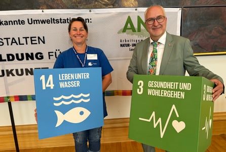 2024-06-21 | Der CSU-Landtagsabgeordnete Helmut Schnotz hat sich bei einer Präsentation der Arbeitsgemeinschaft Natur- und Umweltbildung im Bayerischen Landtag auch über das Graugänsemanagement am Altmühlsee informiert. Im Gespräch mit Martina Widuch von der Umweltstation Altmühlsee ging es dabei vor allem um die nach wie vor sehr hohe Grauganspopulation.