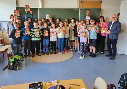 Nun ist der vierte Band der Reihe rund um die vier Hauptfiguren erschienen und der Landtagsabgeordnete Helmut Schnotz hat heute der Grundschule Merkendorf einen Klassensatz von 35 Büchern überreicht.